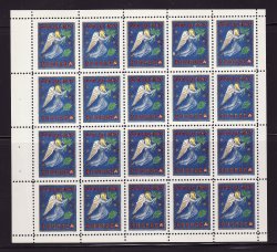 Norway 43x, 1947 Norway TB Charity Seals, Booklet Pane, F, NH. Image of a flying angel holding palm branches, with a golden halo around her head.