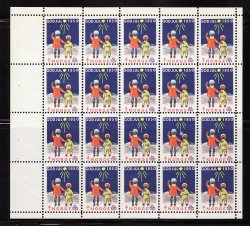 Norway 46x, 1950 Norway TB Charity Seals, Booklet Pane, F, NH. Image of two children in snow looking at a star.