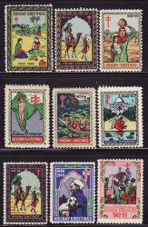 India 1-10, India TB Charity Seal Collection, full gum, F, MNH. Issued 1941-1949 by the Christmas Seal Committee of India, Madar, Ajmer.