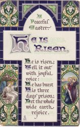 Easter Postcard, Embossed, 1917 Saint Louis, Missouri Postmark. Embossed Easter Postcard "He is Risen" Image of a cross. Price: $5.75 Sale Price: $4.75 You Save: $1.00 (17%)