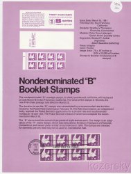 SP484, U.S. #1818-20, Nondenominated "B" Booklet Stamps, USPS Souvenir Page. First Day of Issue Mar. 15, 1981, San Francisco, CA 94101. Scan is an example.