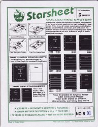 G&K Starsheet Stamp Stock Sheets. G&K Starsheet Stock Sheets are available with a black back. The sheets are all plastic, top loading, and 8.5x11". They are 100% free of chemical softeners, and will fit into a standard three ring binder. The available sizes are one to eight rows. Pages lie perfectly flat.