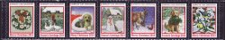 2014-T2, 2014 U.S. Christmas Seals, As Required Strip of 7 Designs, VF, MNH. Issued 2014 by the American Lung Association (ALA). Designed by Sarah Adams/DBK Art Licensing. Multicolored, self-adhesive, serpentine die cut, silver foil border.