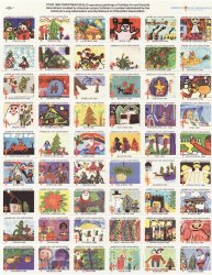 1980-1.2x, 1980 U.S. Christmas Seals Sheet, pm S, full gum, F, MNH. Issued 1980 by the American Lung Association. Images of Children's art, similar to 1975, 54 images designed by school children from each state, plus Puerto Rico, Virgin Islands, D.C., and Guam. English finish