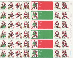 82-1x, 1982 U.S. National Christmas Seals, pm" S", sheet of 42 seals, F, MNH. Issued 1982 by the American Lung Association. Images of Santa and dog, six different seals, and two different gift tags.