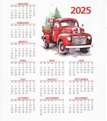 CL124-T1, ALA 2025 U.S. Christmas Seals Themed Calendar, FY25Cal-13. Issued 2024 by the American Lung Association (ALA). 2025 Calendar with image of red truck. Images are from the 2024 ALA Test Design U.S. Christmas Seals. Price: $4.75 Sale Price: $4.25 You Save: $0.50 (11%)