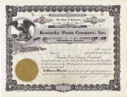 Kentucky Pants Company, Inc., Stock Certificate Unissued Stock Certificate from Kentucky Pants Company, Inc.