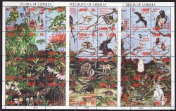 Liberia 1159-61, Flora, Fauna, Birds, Minature Sheets/12, VF, MNH