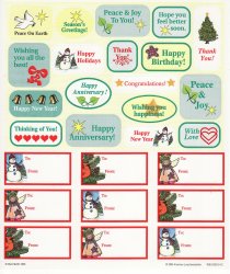 Designed by Mark Maffin. Three (3) panes of eight (8) gift tags and eight (8) note pages, all with images from the 2005 U.S. National Christmas Seals. This is the wide design booklet.