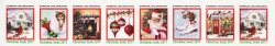 117-1.2, WX376, 2017 U.S. Christmas Seals, As Required Strip of 8 Designs, VF, MNH. As required strip of eight (8) seals with images of house with cardinal in snow, kitten in stocking, fireplace with Christmas tree, Christmas decorations, Santa, ice skates, decorated front doorway, images within green borders, all with white border. Multicolored, self-adhesive, serpentine die cut, white border. Seal size: 18x25mm, cut from a 117-1x2, 2017 U.S. Christmas Seals sheet.