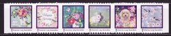 122-ST2, 2022 Test Design U.S. Spring TB Charity Seals, As Required Strip of six (6) designs, self-adhesive, VF, MNH. Issued 2022 by the American Lung Association (ALA). Designed by Sarah Summers/CruiseCreative.com. Images of bunny and flowers, puppy and flowers, birds and flowers, flowers in vase, Happy Spring, flowers with bird. American Lung Association at bottom of each seal. Images are framed in purple, within white margin.