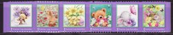 122-ST2, 2022 Test Design U.S. Spring TB Charity Seals, As Required Strip of six (6) designs, self-adhesive, VF, MNH. Issued 2022 by the American Lung Association (ALA). Designed by Makiko/artlicensing.com. Images of teddy bear with flowers, bunny and butterfly, bunny and chicks, bera and nflower bouguet, puppy and flowers, chicks and daffodils.. American Lung Association at bottom of each seal. Images are framed in green, within violet border.