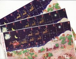 Issued 1976 by the American Lung Association (ALA). Designed by Robert V. Hungerford and Allan Mardon. Christmas landscape with Santa, sleigh, and reindeers riding through the blue sky. Sheet of 54 (6x9) seals seals, SE3S, multicolored. Seal size: 30x25mm. Perforated margin at top.