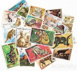 William J Kozersky, Philatelist > STAMP PACKETS > Packets - Topical > Animals > Wild Animals > Kangaroos & Marsupials on Stamps, Topical Stamp Packet, 25 different stamps