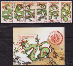 Togo 1912-17, 1918, New Year 2000, Year of Dragon Stamps, S/S. Issued 2000, multicolored, full gum, perf. stamps 123/4x12, S/S 131/4, VF, MNH.