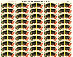 Issued 1958 by the National Tuberculosis Association (NTA). Designed by Alfred Guerra. Images of two seal designs of children with blackboard alternate on sheet. The finish on this sheet is known as an English finish, or dull paper. Printed by Edwards and Deutsch Lithography Co.
