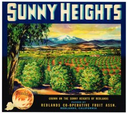 Sunny Heights Brand California Sunkist Oranges Crate Label