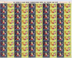 William J Kozersky, Philatelist > U.S. CHRISTMAS SEALS > Full Sheets By Year > 1950-1959 > 1955 > 55-6x, WX174, 1955 U.S. Christmas Seals Sheet, pm W