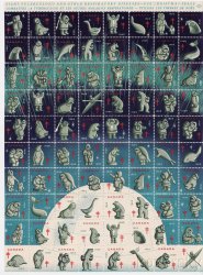 Picture sheet with large igloo at bottom and Aurora Borealis radiating over the rest of the sheet, with cross, and "Canada 1969." Sheet of 80 (8x10); colors: multi; seal size: 22x25mm; perf 12.