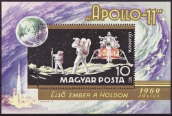 Hungary C295, Hungary Journey To Moon Stamps, Jules Verne. Issued 1969, S/S celebrating moon landing. Multicolored, perf. 11, full gum, VF, Mint, NH.