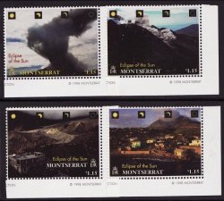 William J Kozersky, Philatelist > FOREIGN STAMPS > Caribbean > Montserrat > Montserrat 957-60, Montserrat Eclipse of Sun Stamps, Volcano, Mountains, MNH