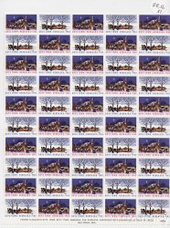 This sheet is fresh, and bright, with sound colors, MNH, undisturbed gum. The two alternating seal designs are similar to the past designs, but dated "1963." Multi-colored, seal size: 37x22, perf: 121/2; Sheet of 50, 5x10; Union Label: Fleming-Potter Union Label below seal 50.