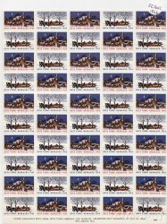 This sheet is fresh, and bright, with sound colors, MNH, undisturbed gum. The two alternating seal designs are similar to the past designs, but dated "1963." Multi-colored, seal size: 37x22, perf: 121/2; Sheet of 50, 5x10; Union Label: Eureka Union Label below seal 50.