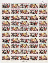 This sheet is fresh, and bright, with sound colors, MNH, undisturbed gum. The two alternating seal designs are similar to the past designs, but dated "1966." Multi-colored, seal size: 371/2x22, perf: 121/2; Sheet of 50, 5x10; Union Label: Eureka Union Label to right of seal 10.