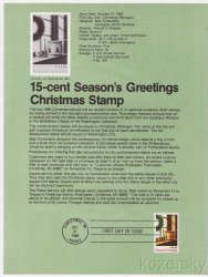 U.S. 1843, Antique Toys Christmas Stamp USPS Souvenir Page. First Day of Issue, Oct 31, 1980, Christmas, MI 49862. Scan is an example. Never folded, shipped flat in a sheet protector.