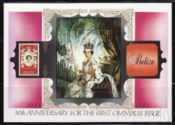 Belize 764, Elizabeth II Coronation Photograph, S/S. Issued 1985, souvenir sheet with Queen Elizabeth Coronation photograph, multicolored, full gum, perf. 14, Issued 1985, multicolored, full gum, perf. 14, VF, MNH.