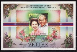 William J Kozersky, Philatelist > FOREIGN STAMPS > Americas > Central > Belize > Belize 857, 40th Wedding Anniversary Stamp, Queen Elizabeth, S/S, MNH