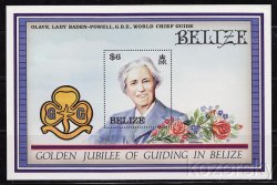 William J Kozersky, Philatelist > FOREIGN STAMPS > Americas > Central > Belize > Belize 877, Guiding Golden Jubilee Stamp, Lady Olave Baden-Powell, S/S, MNH