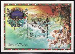 William J Kozersky, Philatelist > FOREIGN STAMPS > Americas > Central > Belize Cayes > Cayes of Belize 27, Shipwrecks Stamp, British Ships, Comet, S/S, MNH