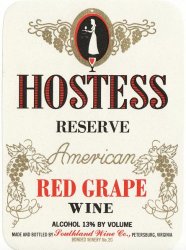 Hostess Reserve American Red Grape Wine Label. ine Label. Southland Wine Co., Petersburg, VA.