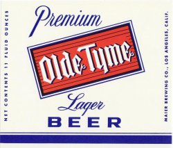 Old Tyme Premium Lager Beer Label from Maier Brewing Co., Los Angeles, Calif., U.S.A.