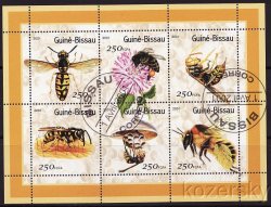 Guinea-Bissau 1510-15, Honey Bees. Issued 2001, sheet of six (6) images, six (6) different bees, multicolored full gum, VF, CTO, NH.
