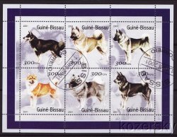 Guinea-Bissau 1571-76, Dogs, sheet of six (6) different breeds of dogs on topical stamps. Issued 2001, multicolored, full gum, VF, CTO, NH.