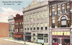 William J Kozersky, Philatelist > POSTCARDS > Topics > Pennsylvania > Masonic Hall and Post Office. Mt. Carmel, Pennsylvania. Linen Postcard