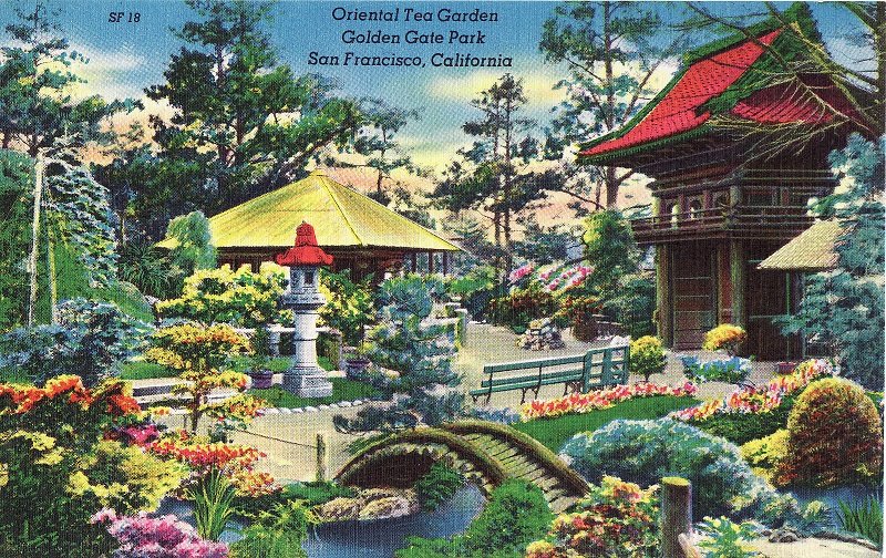 Oriental Tea Garden. Golden Gate Park. San Francisco, CA. Linen Postcard