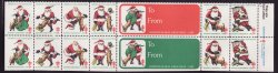 Block of 14 (2x7) seals. Six (6) different seals, and two (2) different gift tags in fifth column. Seal size: 24x30mm. Gift tags size: 80x30mm, Perf 11, multicolored.