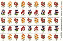 90-ST4x, 1990 ALA Test Design U.S. Spring Charity Seals Sheet. Sheet of 45 seals, full gum, VF, MNH. Issued 1990 by the American Lung Association (ALA). Designed by Jafus Trammel. Images of Sneezeless flowers - rose, poppy, pansy, bougainvillea.