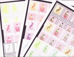 Canada 82Xpcpx, 1998 CLA Canada Spring Charity Seals Progressive Color Proofs (PCP), full gum, rouletted, VF, MNH. Issued 1998 by the Canadian Lung Association (CLA). images of five (5) hummingbirds, multicolored. One sheet each of the 9 stages used to print the 1998 Canada Spring Charity Seals.