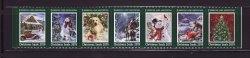 119-T3, 2019 U.S. Test Design Christmas Seals, As Required Strip of 7 Designs, VF, MNH. Issued 2019 by the American Lung Association (ALA). Artwork by Dona Gelsinger. Imaqes of snowman with animals; puppy with ornament; Santa with reindeer; snowman with bird; birds in winter scene; Christmas tree; and winter cabin scene. Multicolored, self-adhesive, serpentine die cut. All images trimmed in white within green border. "Christmas Seals 2019" at bottom of each Christmas Seal.