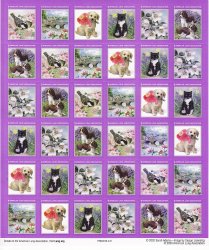 120-S1x, 2020 ALA National Design U.S. Spring TB Charity Seals Sheet, FY20-EFAS-4-01. VF, MNH. Issued 2020 by the American Lung Association (ALA). Designed by Sarah Adams - Image by Design Licensing. Images of dog with flowers, cat, flowers, dogs, bird, and water scene. Images are framed in purple, within purple margin.