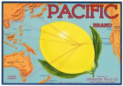 Panama Brand Lemon Crate Label, Crate label from Johnston Fruit Co., Santa Barbara, California. Image of shipping routes through the Panama Canal.