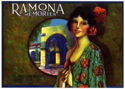 Ramona Brand Vintage Lemon Crate Label. Crate label from Ssan Fernando Heights Lemon Association, Sam Fernando, California. Image of a beautiful Ramona..
