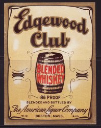 Chesterbrook Brand Whiskey Label. Vintage, original whiskey label from The American Liquor Company, Boston, Massachusetts. "Colored and flavored with woodchips."