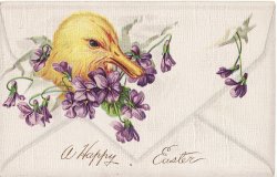 Easter Postcard, 1917 Mulberry Grove, Illinois Postmark. Embossed Easter Postcard "A Happy Easter" Image of a duck and flowers.