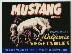 Mustang Brand California Vegetable Crate Label, 5.25x7 inches